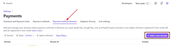 Payment Method Domain Enablement