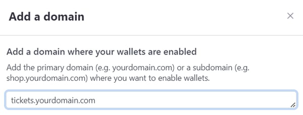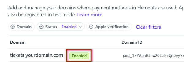 Note: Confirm that your existing domain is not on the existing list and not verified. Verification for all Ticketure hosted payment pages will be automatic. If you are hosting your own payment page (not recommended) see details below for self hosted payment pages.